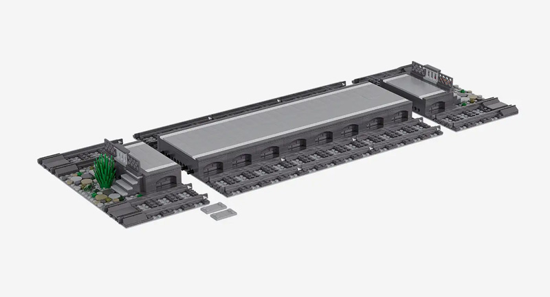 Im Zentrum steht die Bahnhofshalle, die aus 5438 Teilen aufgebaut wird. Nach dem Bau hat sie eine Länge von 77,5 cm.