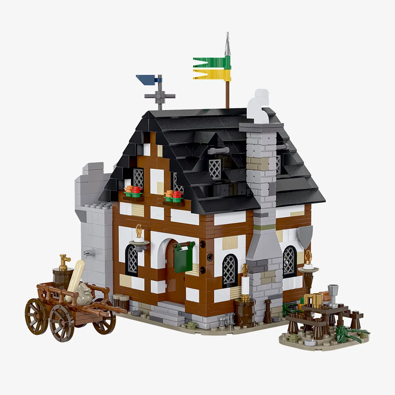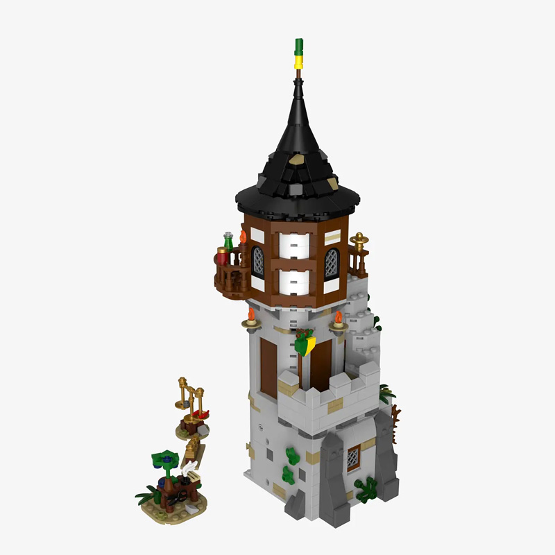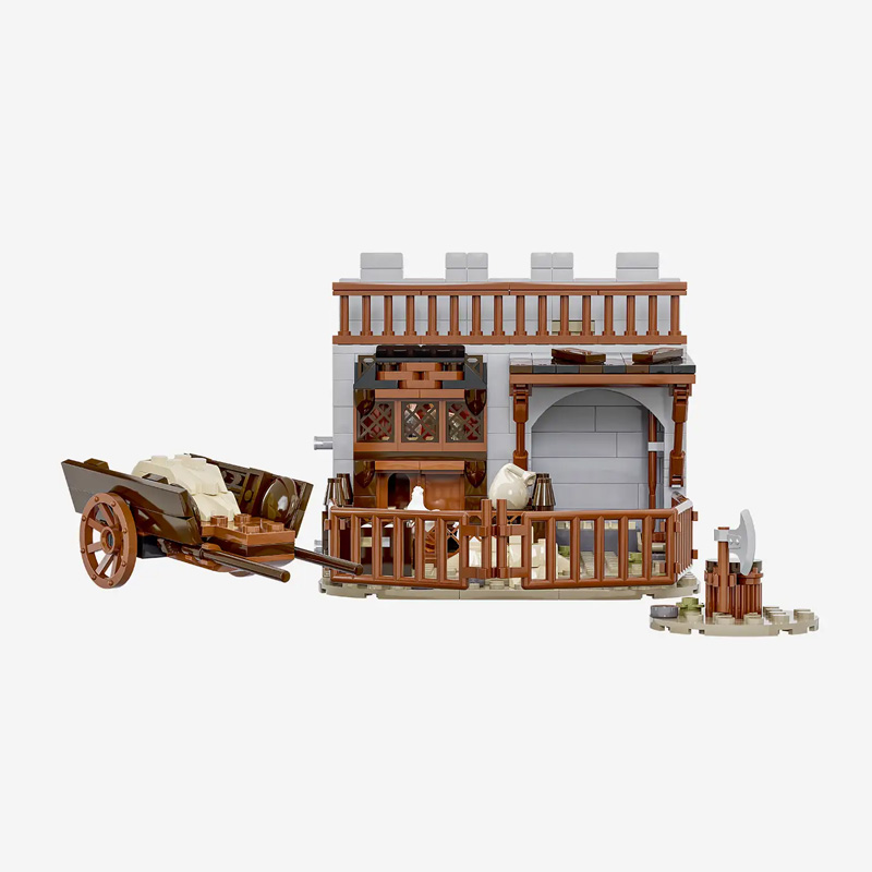 Durch abnehmbare Etagen und Dächer lässt sich die liebevoll gestaltete Einrichtung samt Minifigur entdecken und nahtlos in die mittelalterliche Festungslandschaft integrieren.