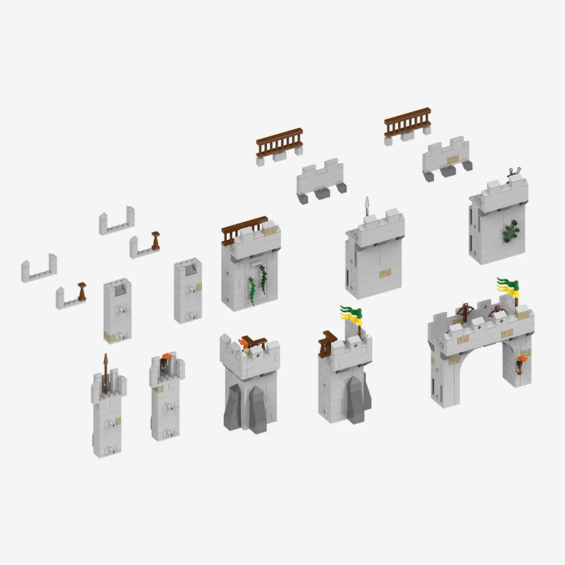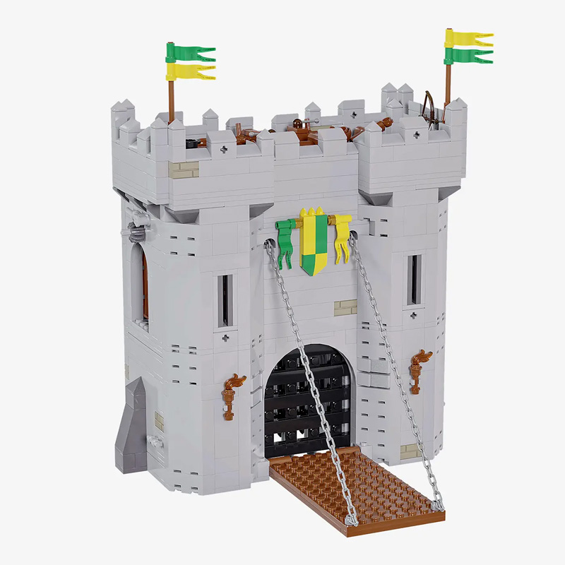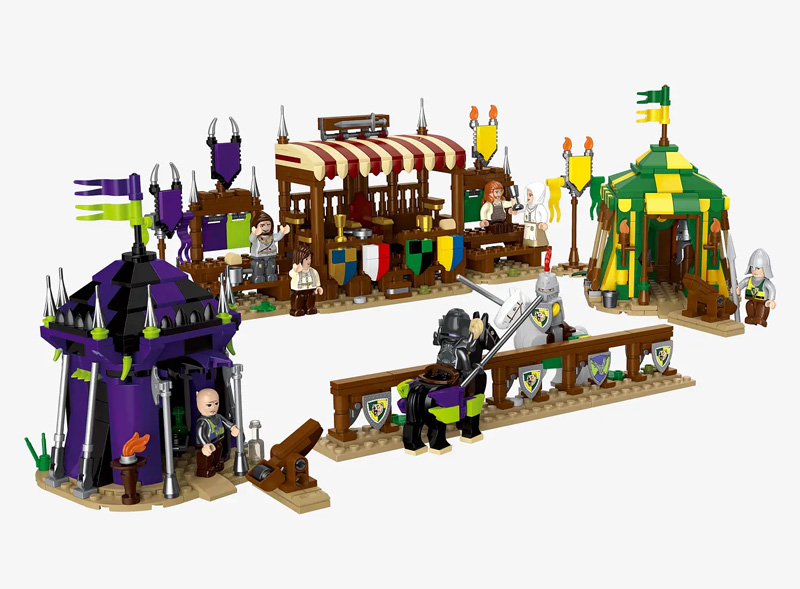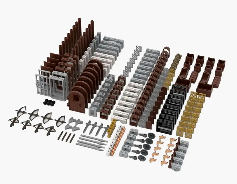 Zuletzt schaffen die Belagerungsmaschinen (108940) einen spielerischen Übergang zur Festung Rabenstein, denn das enthaltene Mauererlement ist in den Farben der Festung (Lila, Lime – Wappen, dunkelgraue Steine) gehalten.