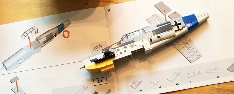 Der Aufbau ist schnell erledigt und sollte auch für Anfänger keine Schwierigkeiten darstellen. COBI empfiehlt das Set ab sechs Jahren, demnach entspricht die Messerschmitt im Schwierigkeitsgrad den 1:35 Automodellen, die ähnlich simpel aufzubauen sind. Zwar werden mitunter sehr kleine Teile verbaut, im Gegensatz zu anderen COBI-Sets artet die Messerschmitt jedoch nicht in Fummelei aus.