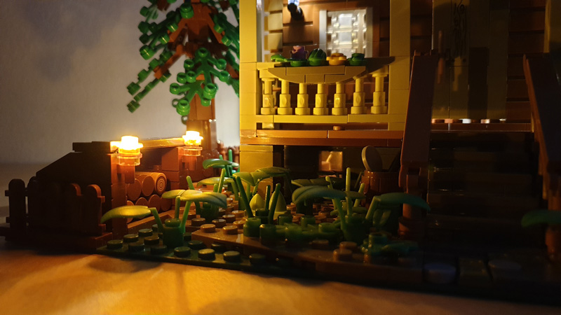 Mittlerweile bieten viele Firmen separate Beleuchtungskits an, um LEGO-Modelle und andere Sets stimmungsvoll in Szene setzen zu können. Die Besonderheit der Waldhütte liegt darin, dass ein komplettes LED Kit bereits dabei ist, um das Haus zu beleuchten.