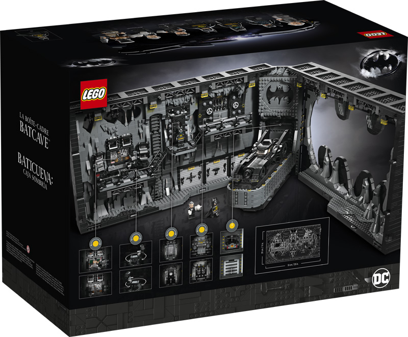 Die Bathöhle zeigt sich in einem massiven Schaukasten, der an der Vorderseite über einen Ausschnitt mit dem Batlogo verfügt. Wird diese aufgeklappt, zeigen sich vielfältige Details. So kann etwa das ebenfalls enthaltene Batmobil in der Mitte platziert werden. In dem Fahrzeug kann die Batman-Figur Platz nehmen. Wird ein Rad zur Seite gedreht, erscheinen zwei Shooter, am Auspuff kann ein Flammenelement befestigt werden.