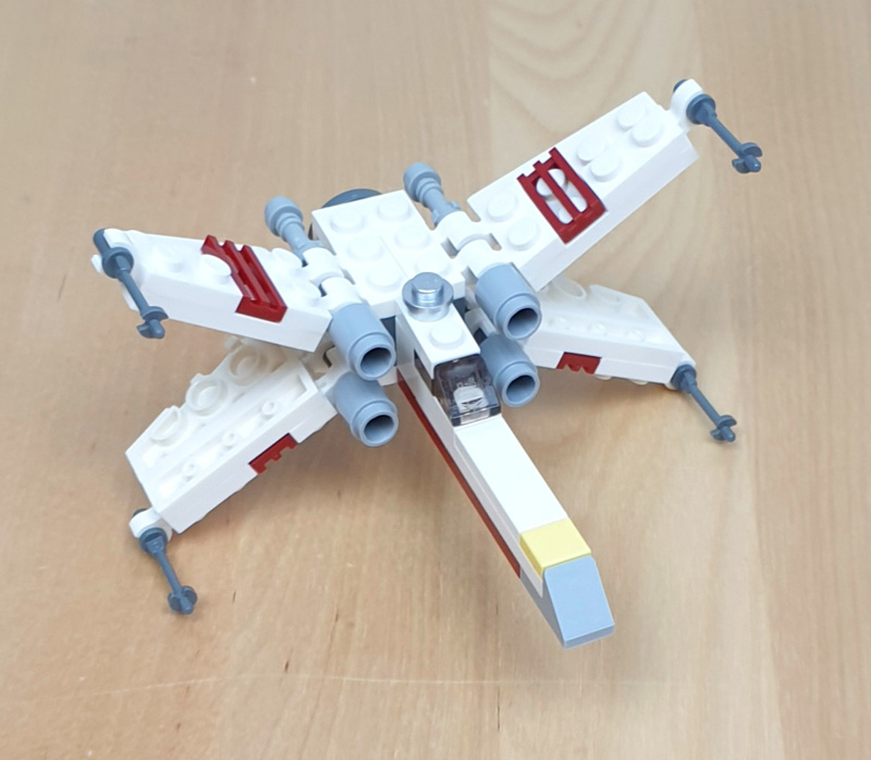 Im beiliegenden Paperpack (912304) ist das Minimodell eines X-Wing enthalten, das aus 57 Teilen gebaut wird.